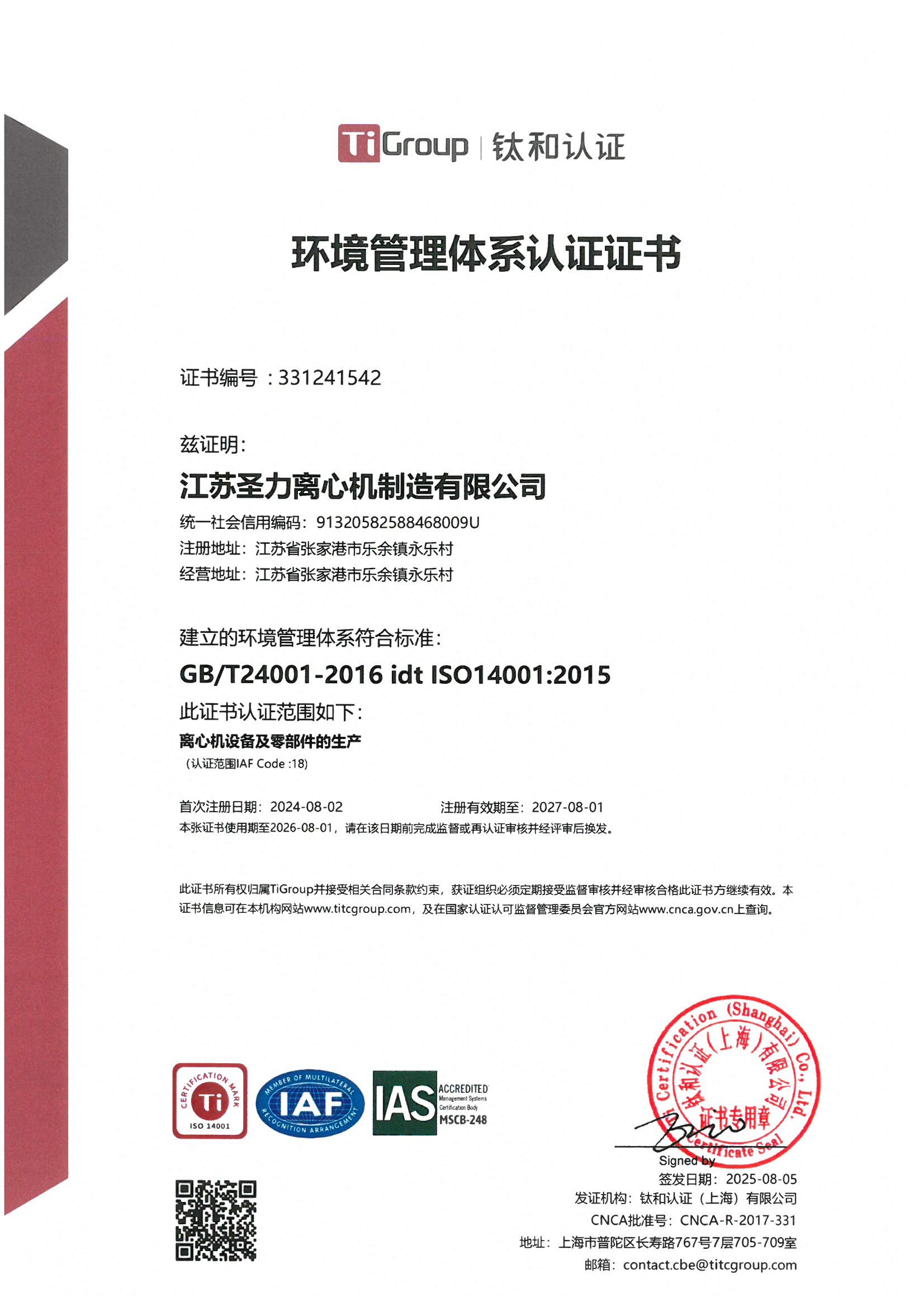 江蘇圣力離心機(jī)制造有限公司是國內(nèi)分離機(jī)械行業(yè)中主要的離心機(jī)生產(chǎn)企業(yè),對離心機(jī)的研究、設(shè)計、制造有多年的歷史,擁有齊全的設(shè)備、完善的檢測手段。公司已通過IS09000國際質(zhì)量體系認(rèn)證、ISO14001環(huán)境管理體系認(rèn)證、ISO45001:2018職業(yè)健康安全管理體系認(rèn)證和CE認(rèn)證,是江蘇省高新技術(shù)企業(yè),曾榮獲國家和地方多項榮譽(yù)稱號。